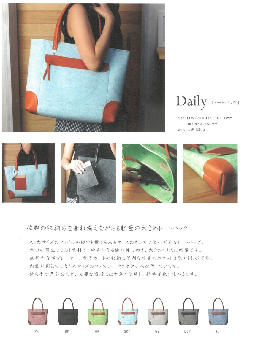 軽くて丈夫、防虫性に富んだオン・オフを問わず、とても使いやすいバッグです。