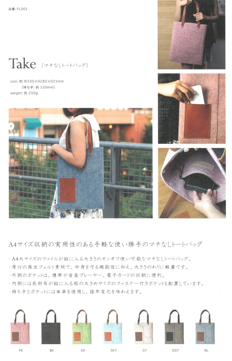 マチなしトートバッグ 価格:6,800円(税別)